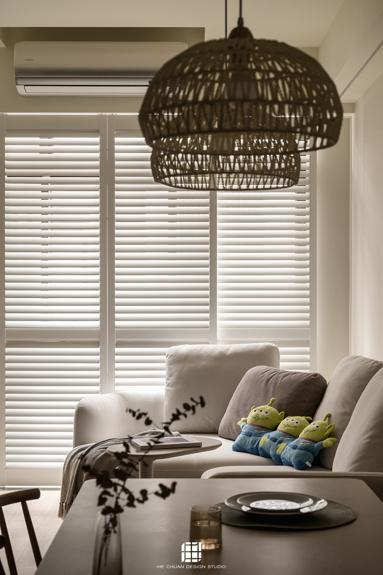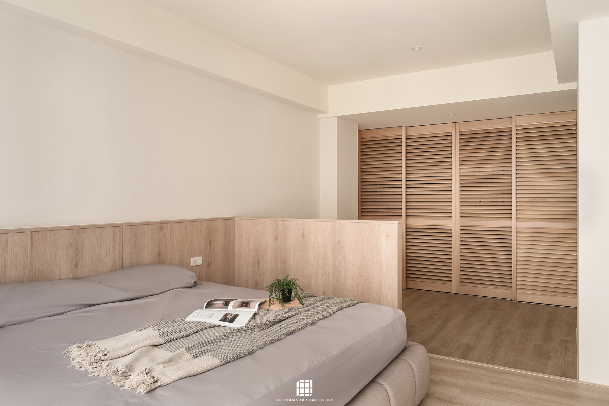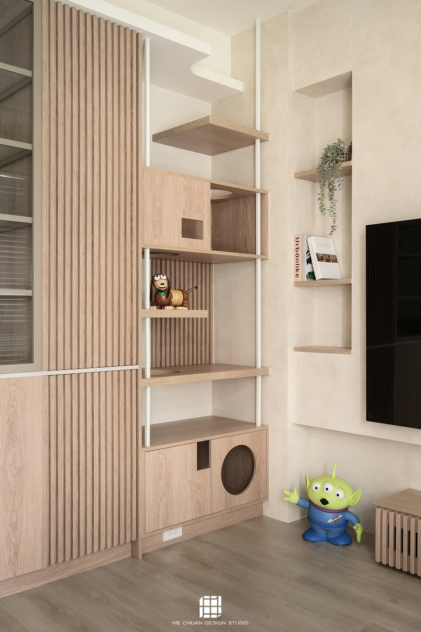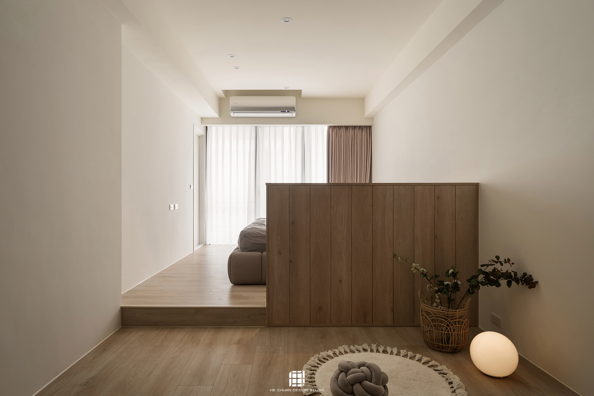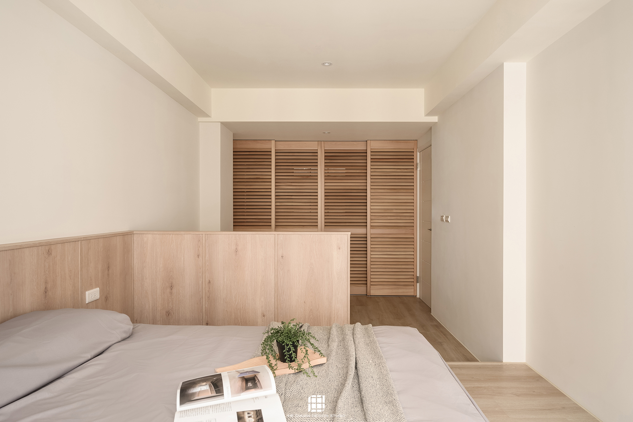 「蒔」意為栽種。本案以此為核心概念,將光線、材質與生活感受,緩緩蒔入空間之中。整體以淺木色為基底,搭配奶油白與低彩度色階,建立溫潤且柔和的居住氛圍。木質紋理的自然肌理,承載生活的時間感;留白牆面則讓視覺得以呼吸,形塑乾淨而純粹的空間語彙。公領域採開放式配置,讓日光自窗邊延展至室內深處。光線在木質與織品表面流動,隨時間推移產生細膩層次,使空間在不同時段呈現不同表情。材質選擇上,以溫潤觸感與自然質地為優先,減少過度裝飾,回歸生活本質。角落裡點綴的公仔與小物,如同一顆顆被蒔下的星星,悄然構築屬於屋主的私密宇宙。童心與日常在此共存,理性配置之中保留柔軟餘地。