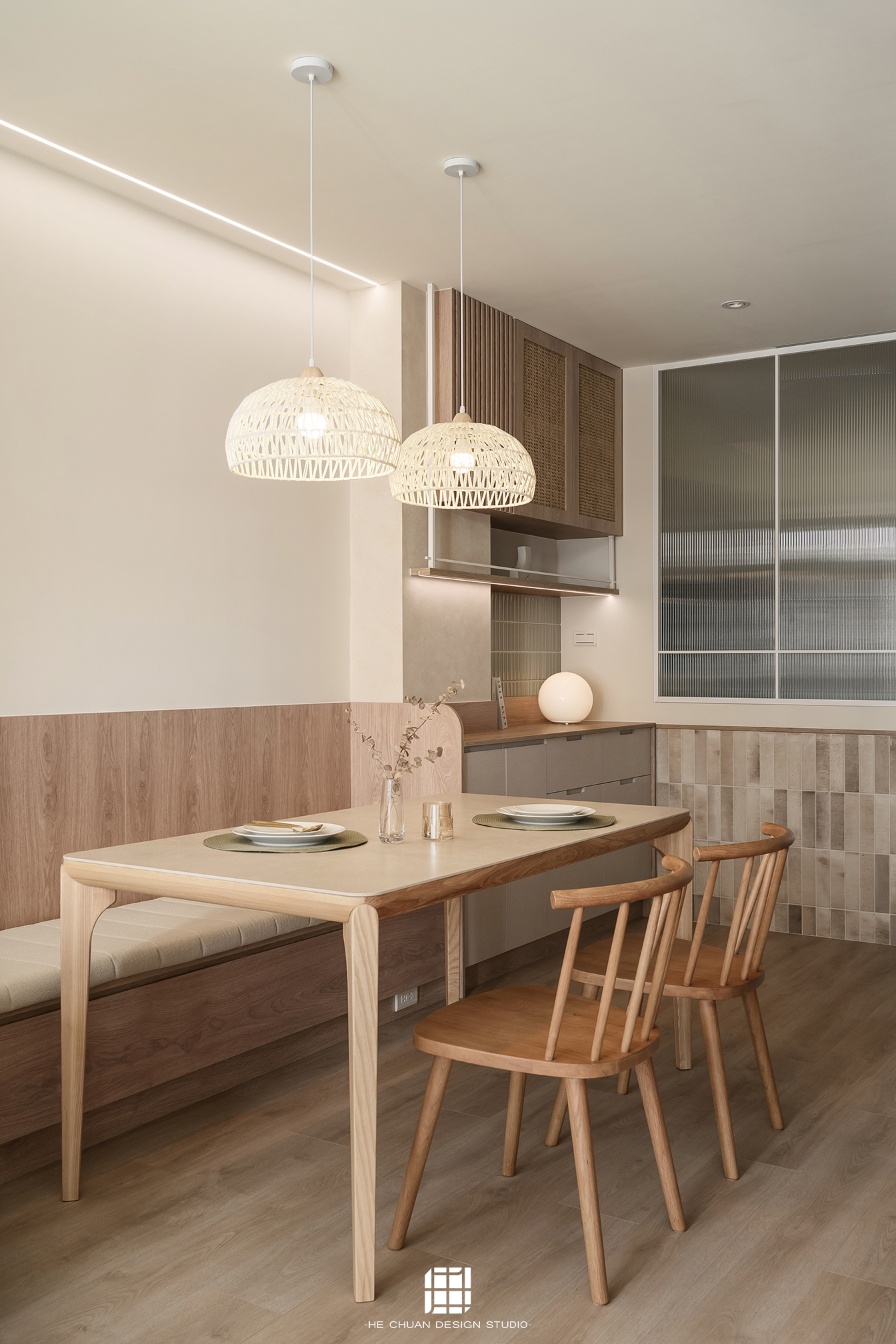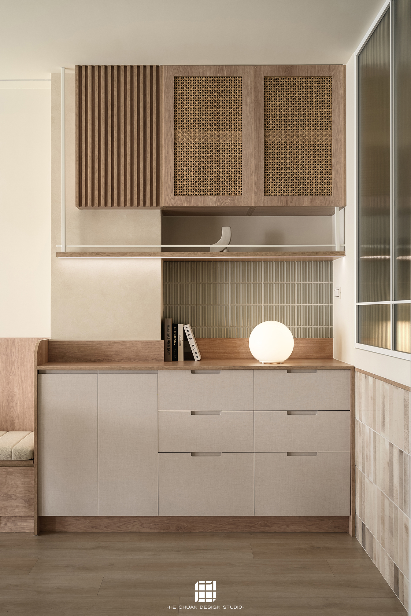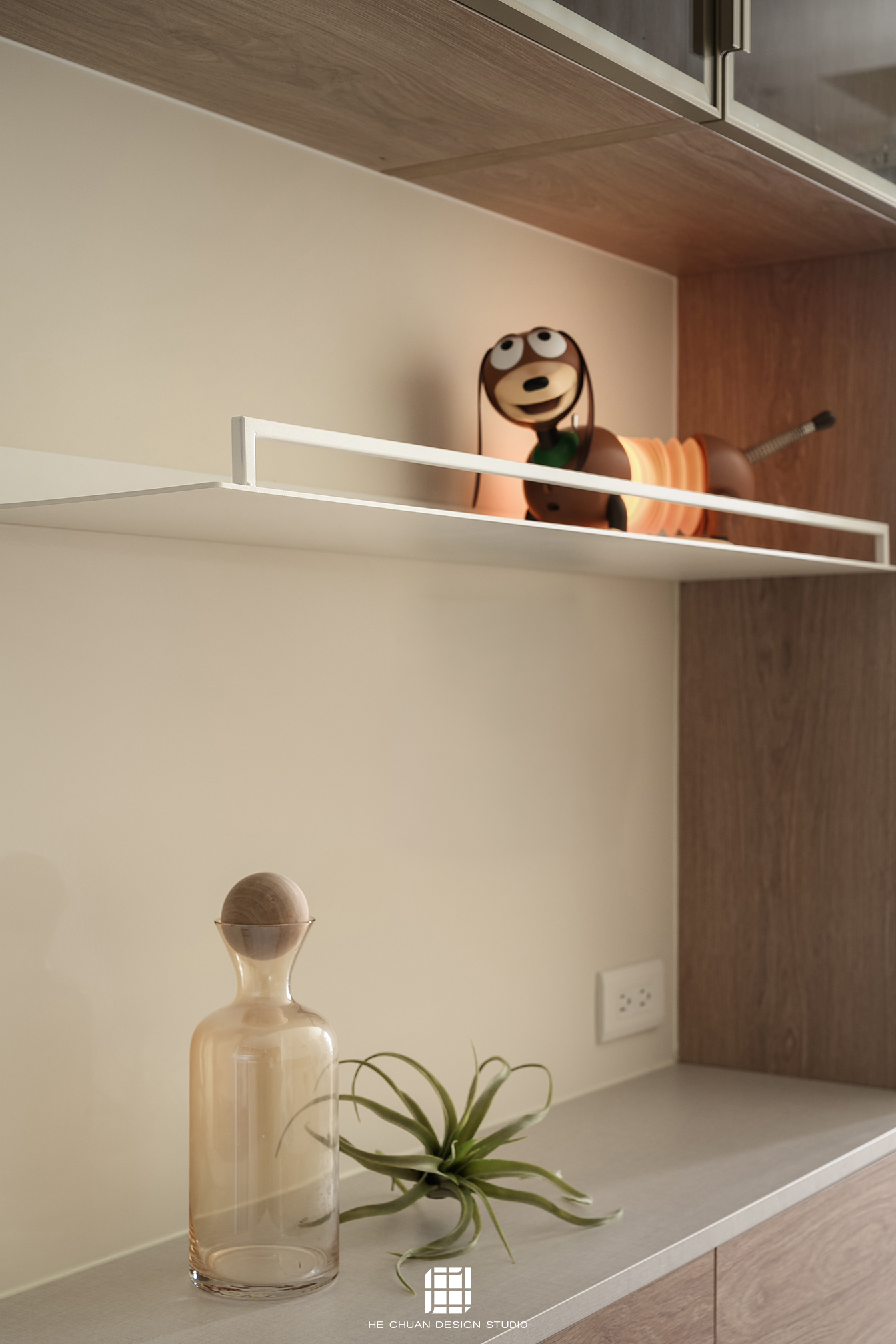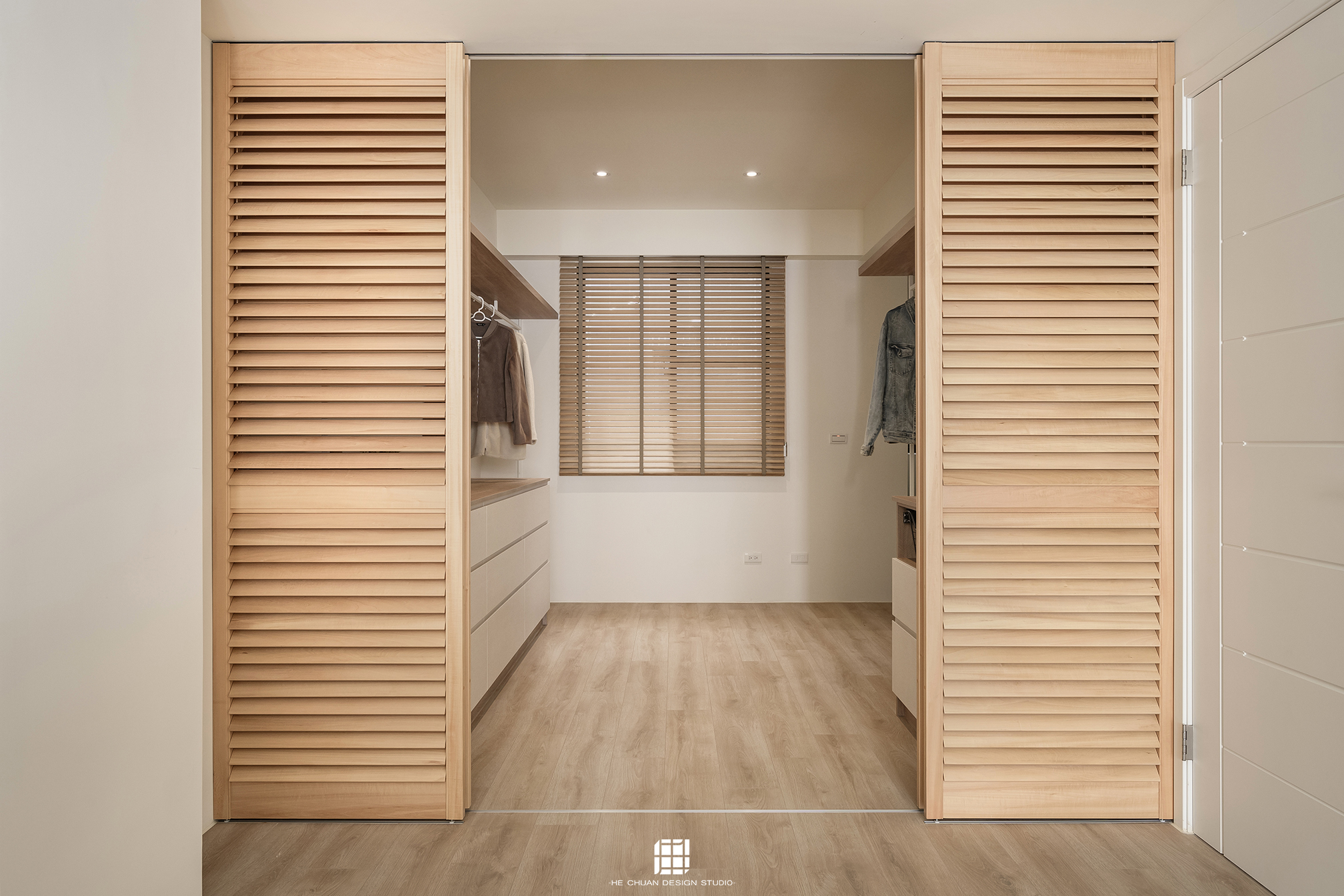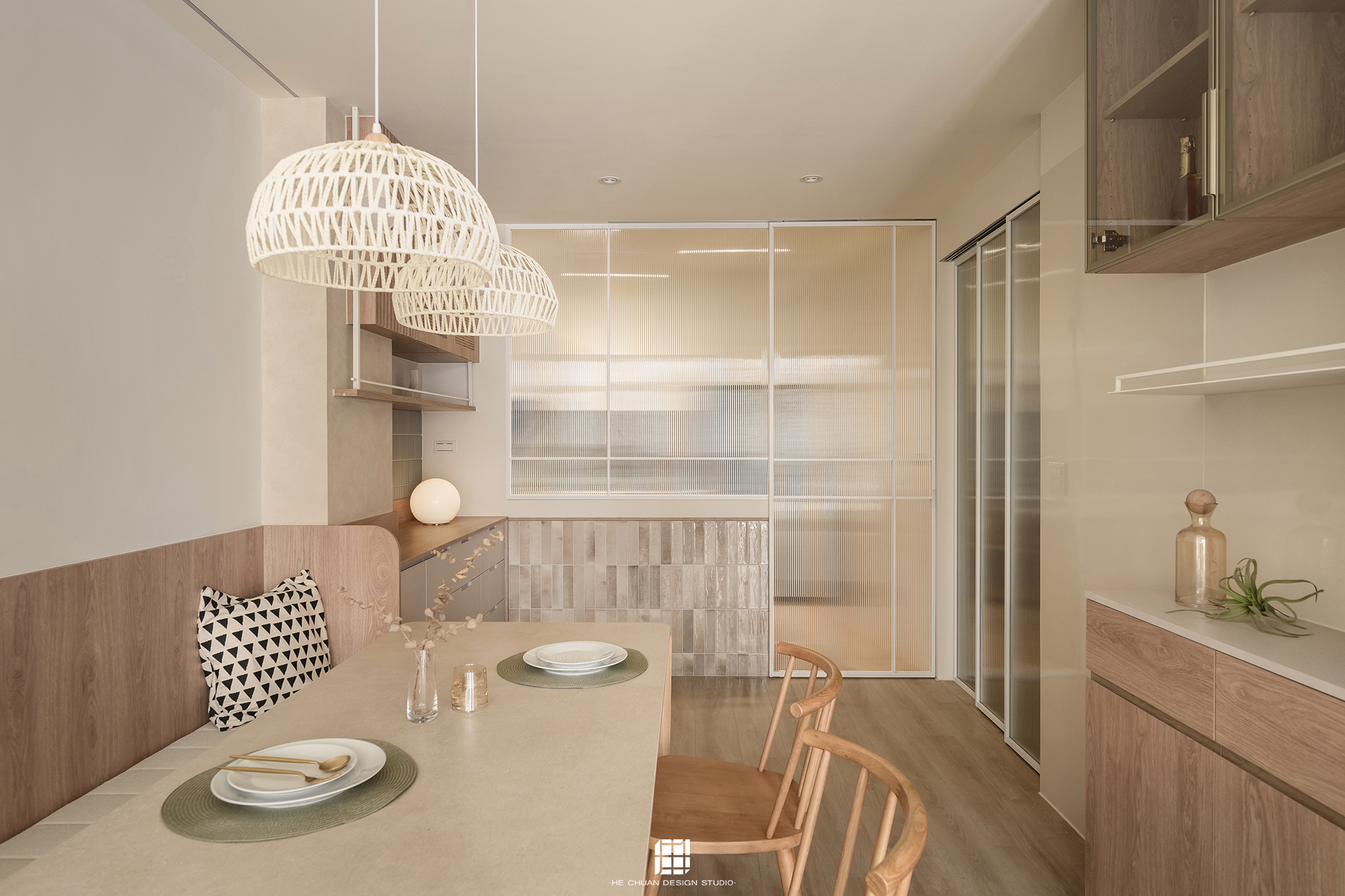 「蒔」意為栽種。本案以此為核心概念,將光線、材質與生活感受,緩緩蒔入空間之中。整體以淺木色為基底,搭配奶油白與低彩度色階,建立溫潤且柔和的居住氛圍。木質紋理的自然肌理,承載生活的時間感;留白牆面則讓視覺得以呼吸,形塑乾淨而純粹的空間語彙。公領域採開放式配置,讓日光自窗邊延展至室內深處。光線在木質與織品表面流動,隨時間推移產生細膩層次,使空間在不同時段呈現不同表情。材質選擇上,以溫潤觸感與自然質地為優先,減少過度裝飾,回歸生活本質。角落裡點綴的公仔與小物,如同一顆顆被蒔下的星星,悄然構築屬於屋主的私密宇宙。童心與日常在此共存,理性配置之中保留柔軟餘地。