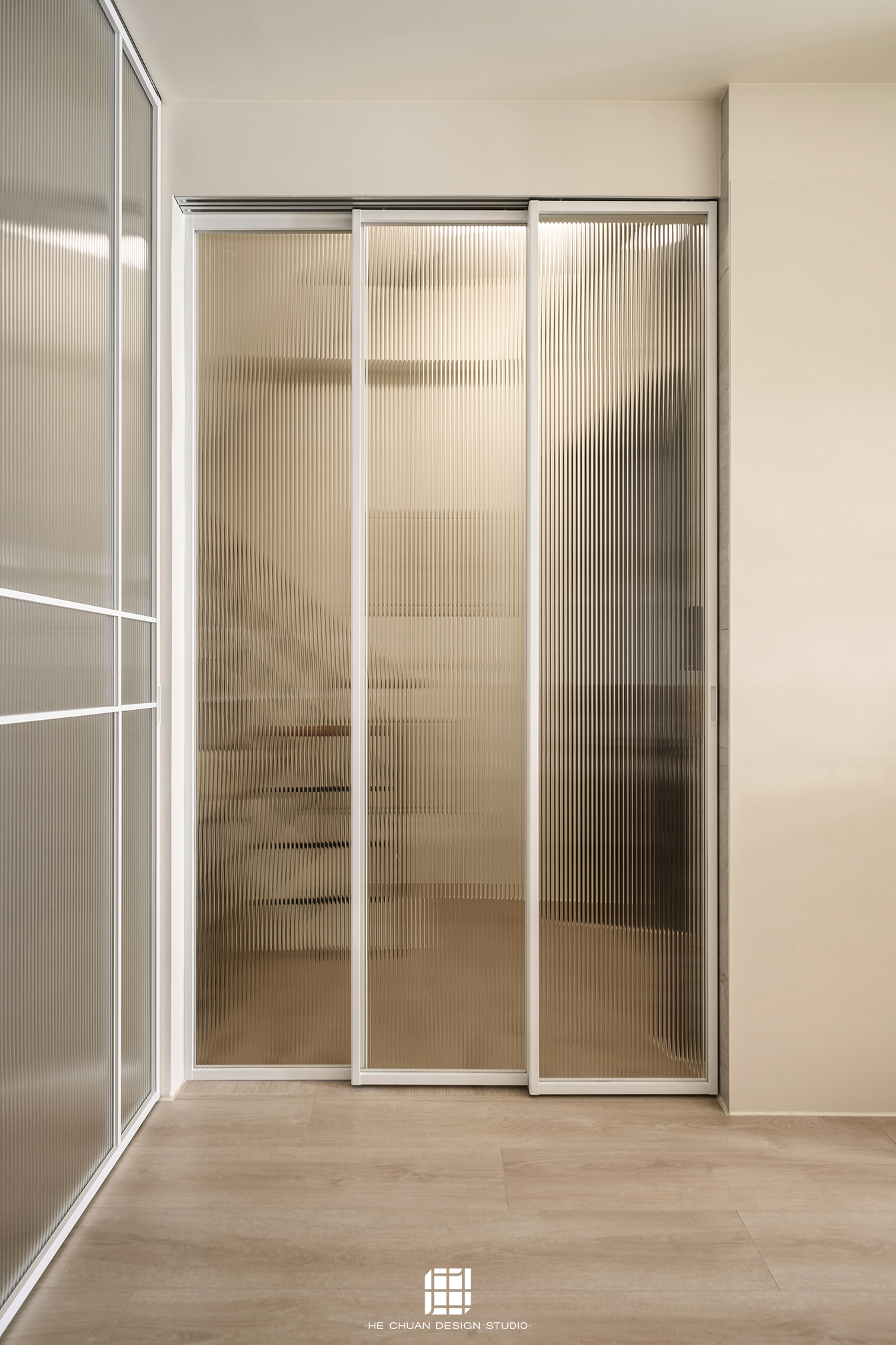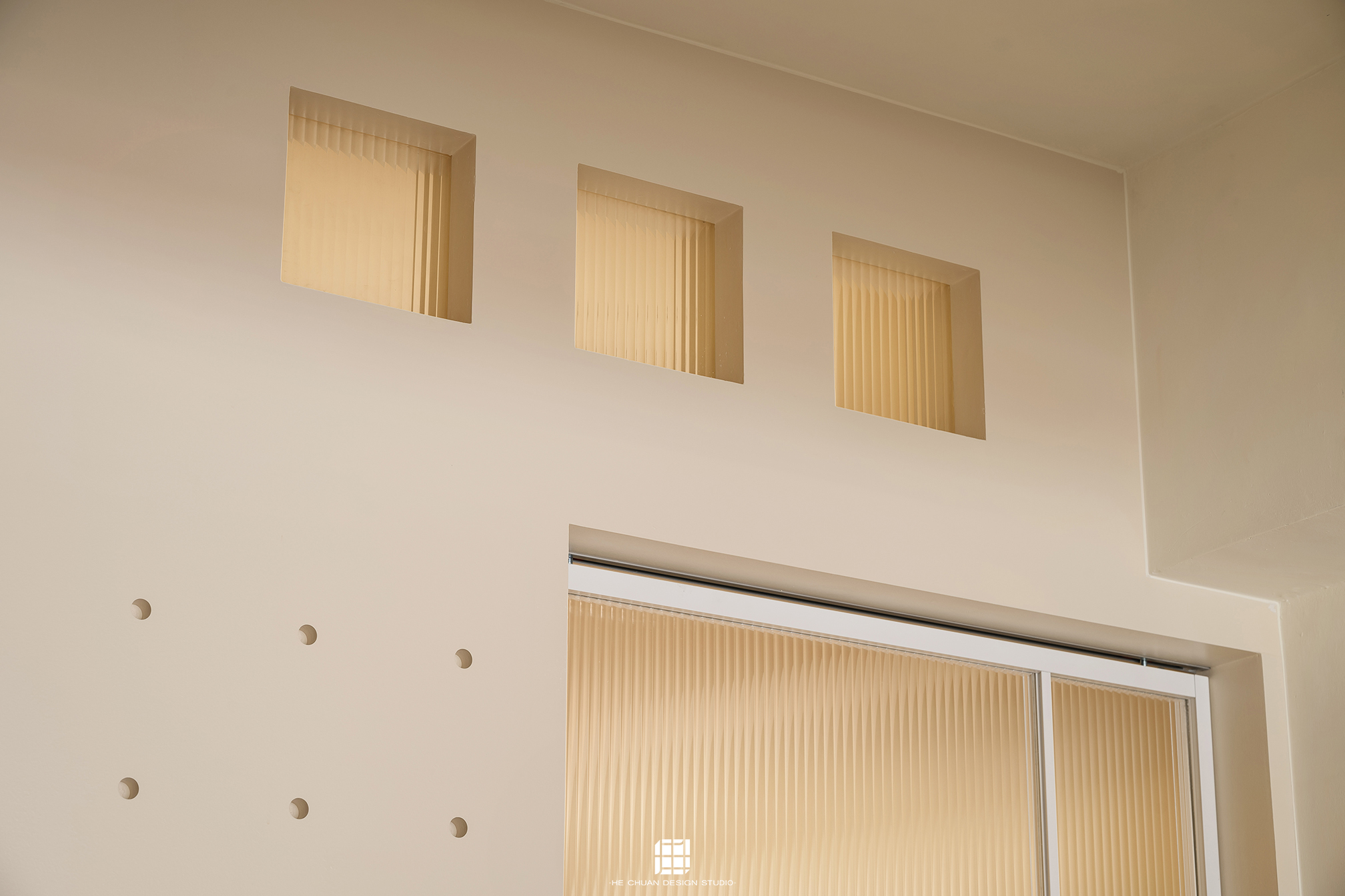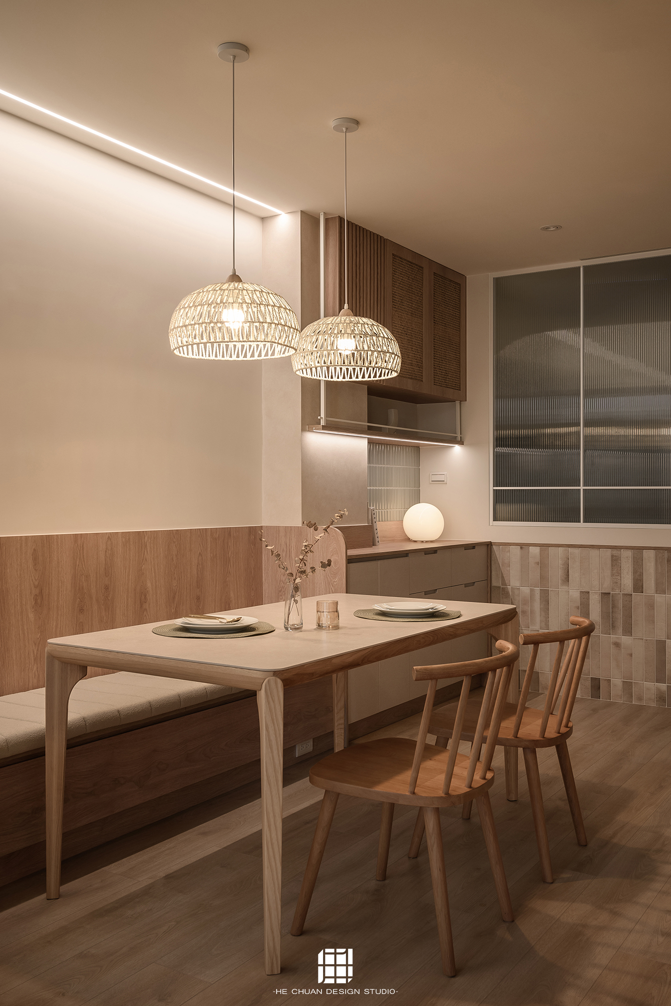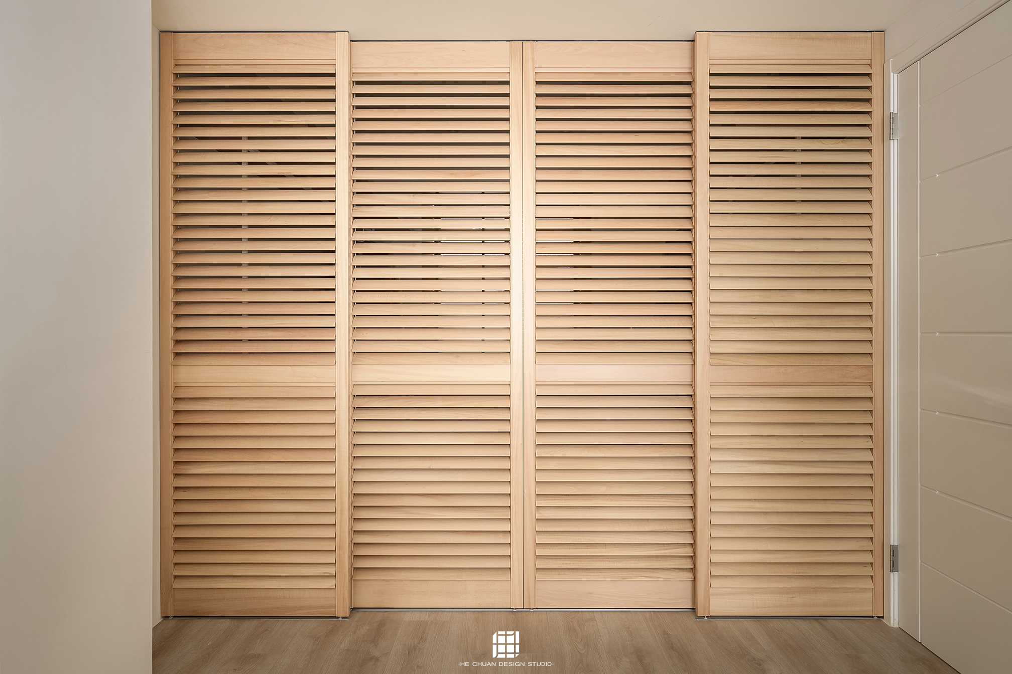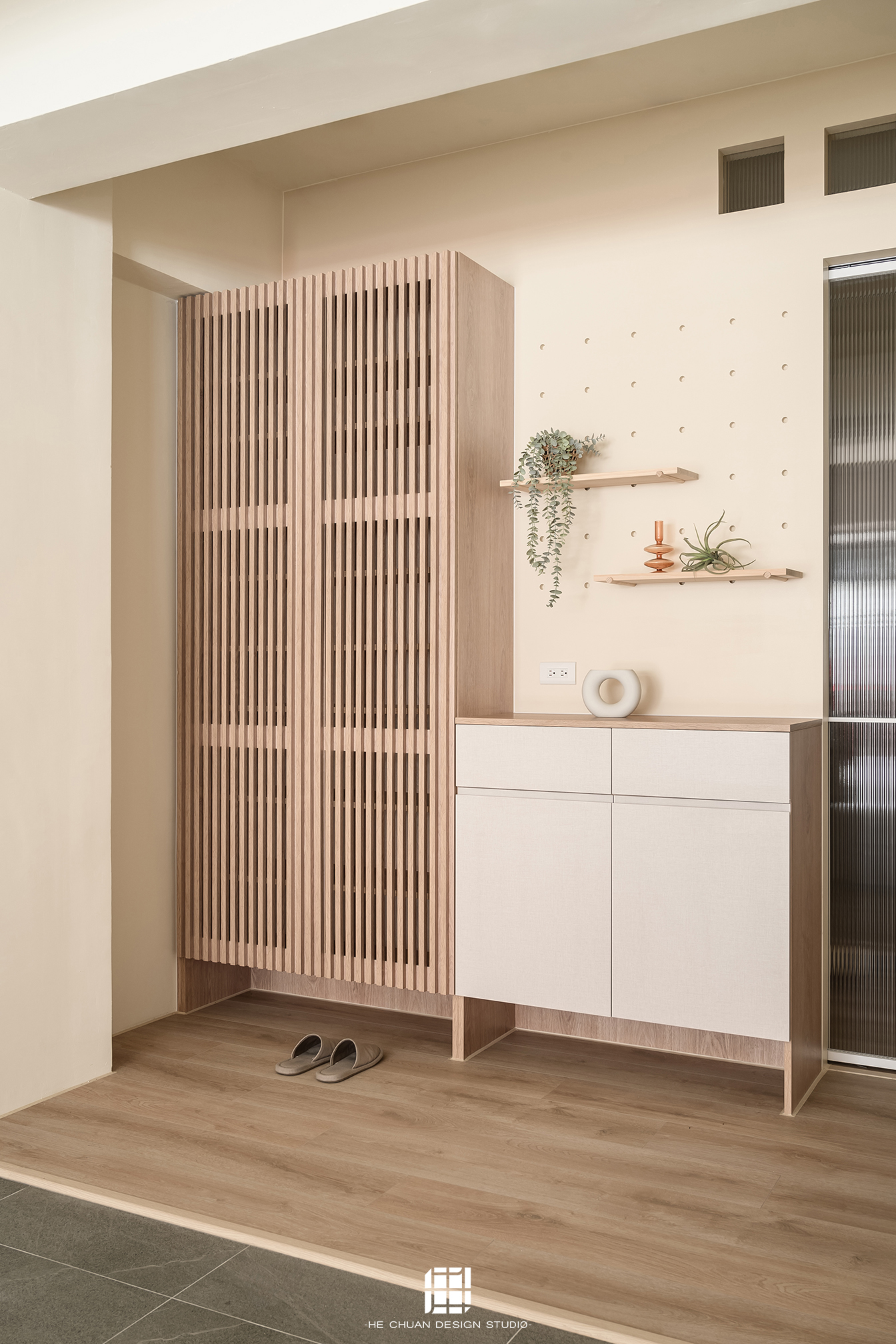 「蒔」意為栽種。本案以此為核心概念,將光線、材質與生活感受,緩緩蒔入空間之中。整體以淺木色為基底,搭配奶油白與低彩度色階,建立溫潤且柔和的居住氛圍。木質紋理的自然肌理,承載生活的時間感;留白牆面則讓視覺得以呼吸,形塑乾淨而純粹的空間語彙。公領域採開放式配置,讓日光自窗邊延展至室內深處。光線在木質與織品表面流動,隨時間推移產生細膩層次,使空間在不同時段呈現不同表情。材質選擇上,以溫潤觸感與自然質地為優先,減少過度裝飾,回歸生活本質。角落裡點綴的公仔與小物,如同一顆顆被蒔下的星星,悄然構築屬於屋主的私密宇宙。童心與日常在此共存,理性配置之中保留柔軟餘地。
